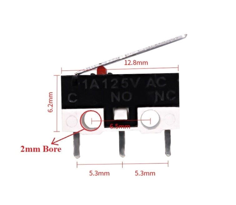 Microintrerupator / limitator capat de cursa ce actioneaza prin apasarea tijei / lamelei.